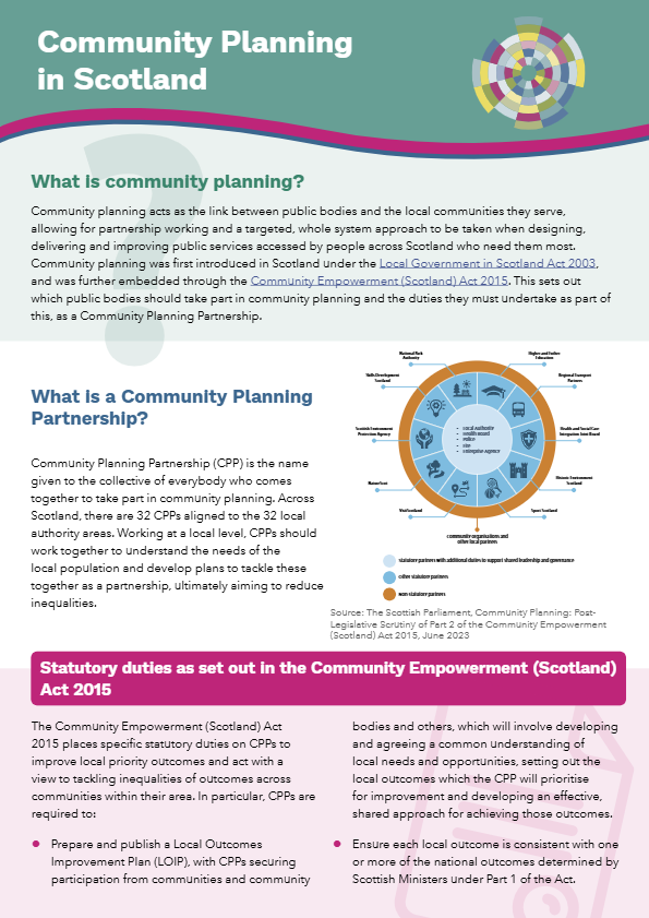 The Improvement Service have a new induction resource which gives an overview of community planning in Scotland and includes: